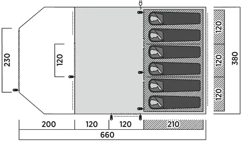 - Ruimte: 210 x 140 + 160 + 120 + 140 cm